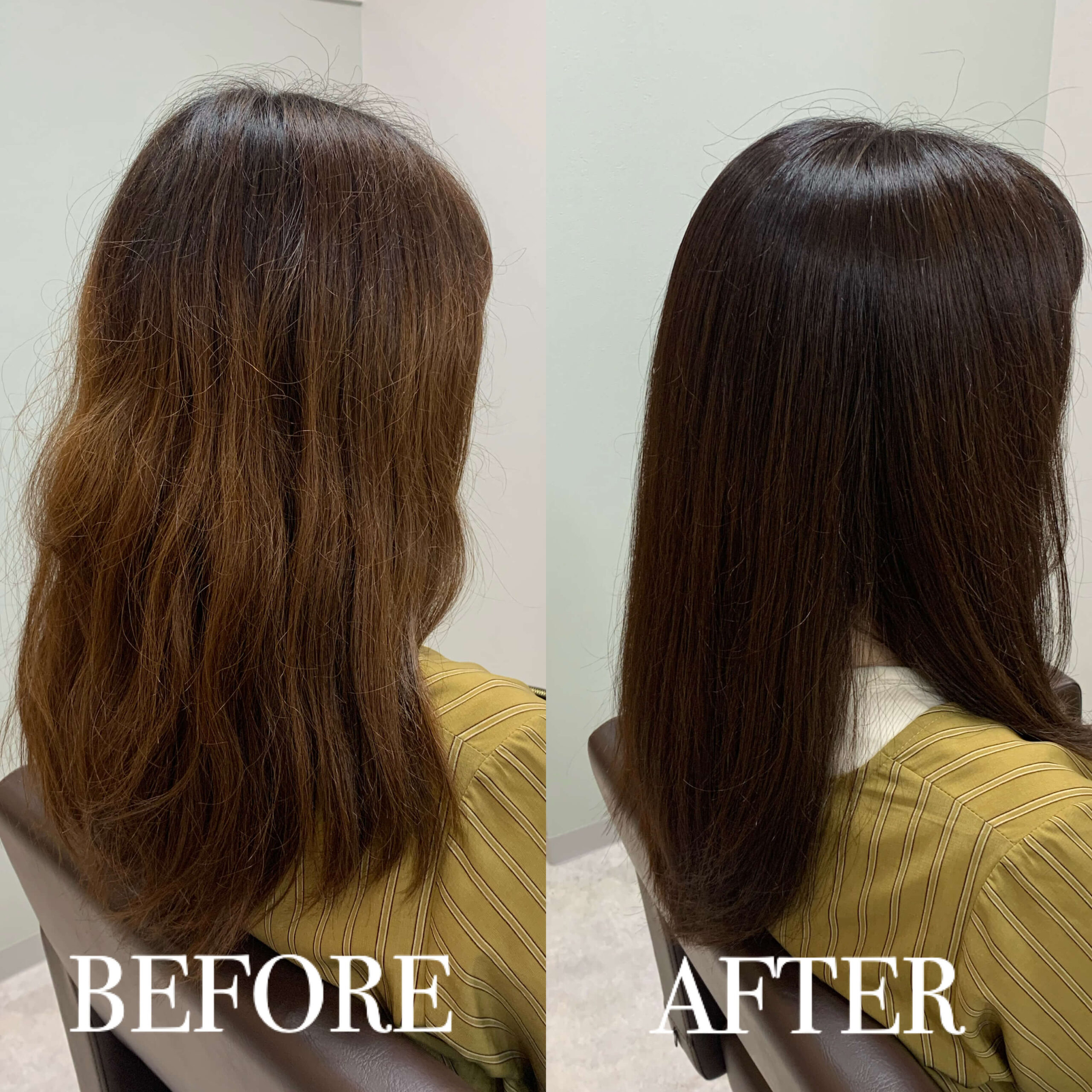 初めての来店で十分キレイになりますが負担が大きい髪の毛ですと一度の施術だけでは改善されないことがございます。